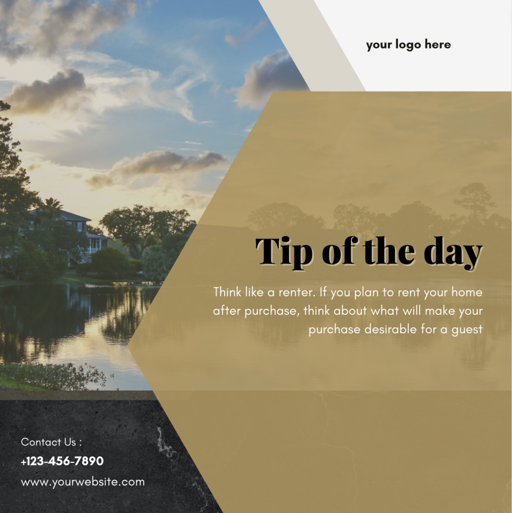 - Tips Templates: Position yourself as an industry expert! Share valuable real estate tips with your followers using our visually appealing tips templates. Whether it's about home staging, financing, or property maintenance, these templates are designed to provide bite-sized information in a memorable way.