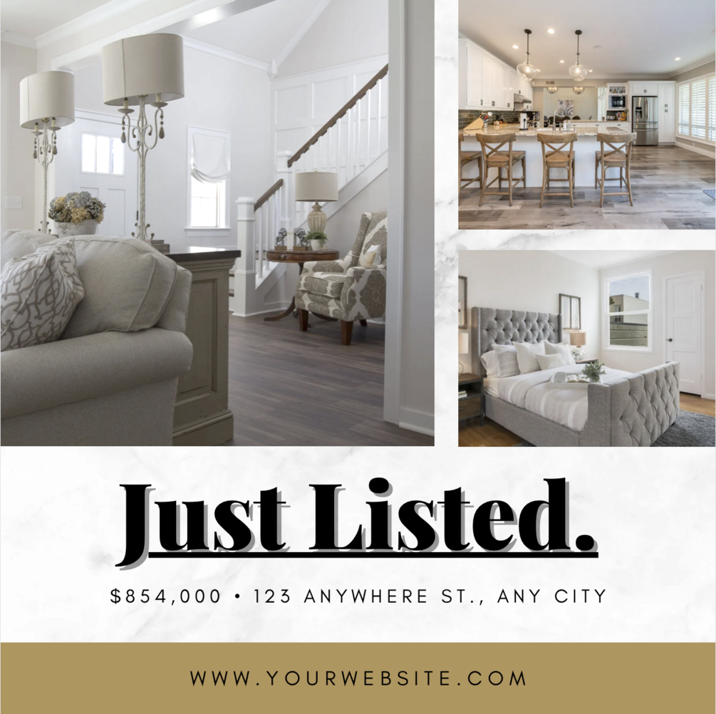 - Just Listed Templates: Showcase your new property listings in a way that captures attention! With our 'Just Listed' templates, you can present properties with high-quality images, key details, and compelling call-to-actions, ensuring potential buyers and renters take notice.